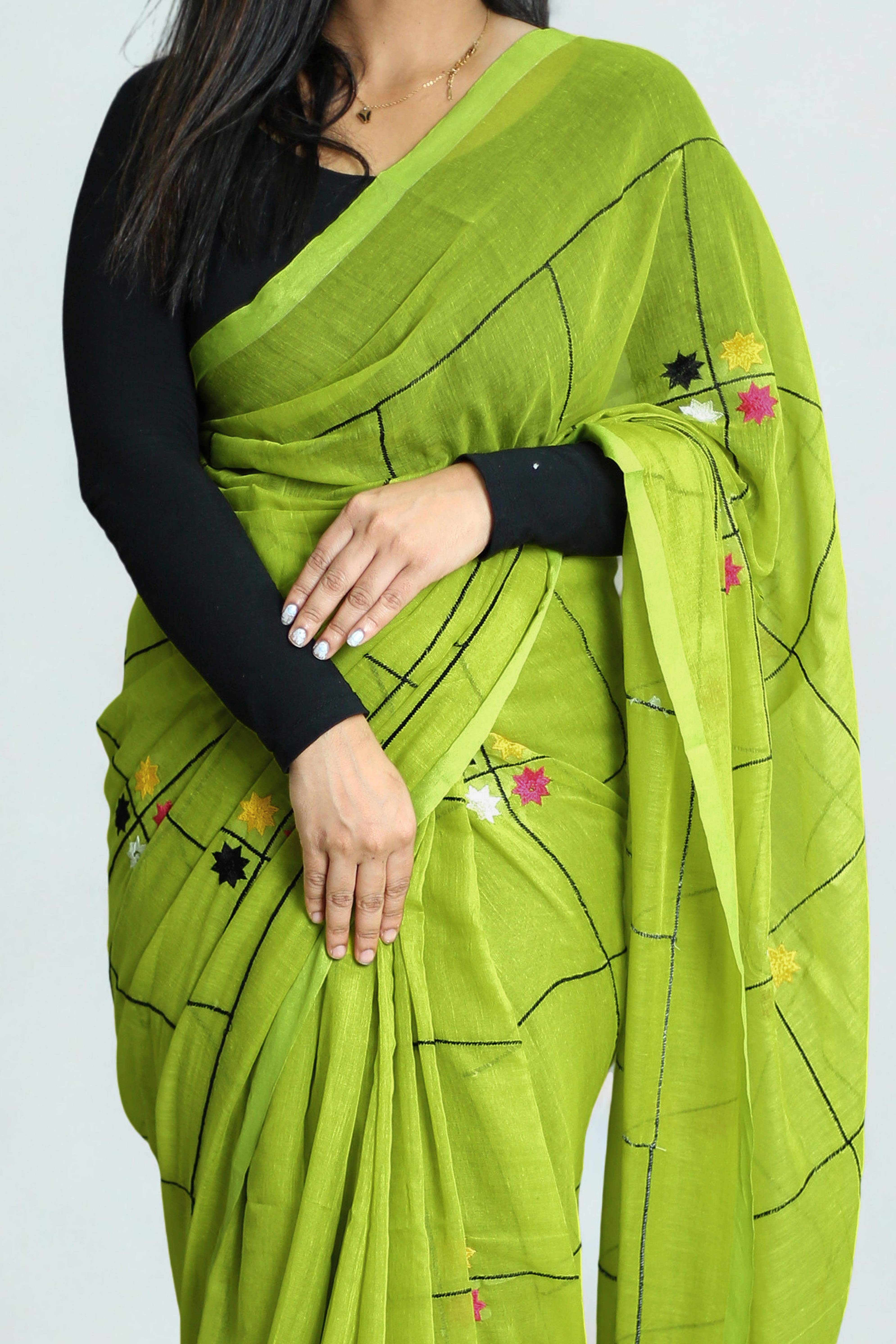 Malcotton Saree – Floral Thread Work – suryasilksonline.com