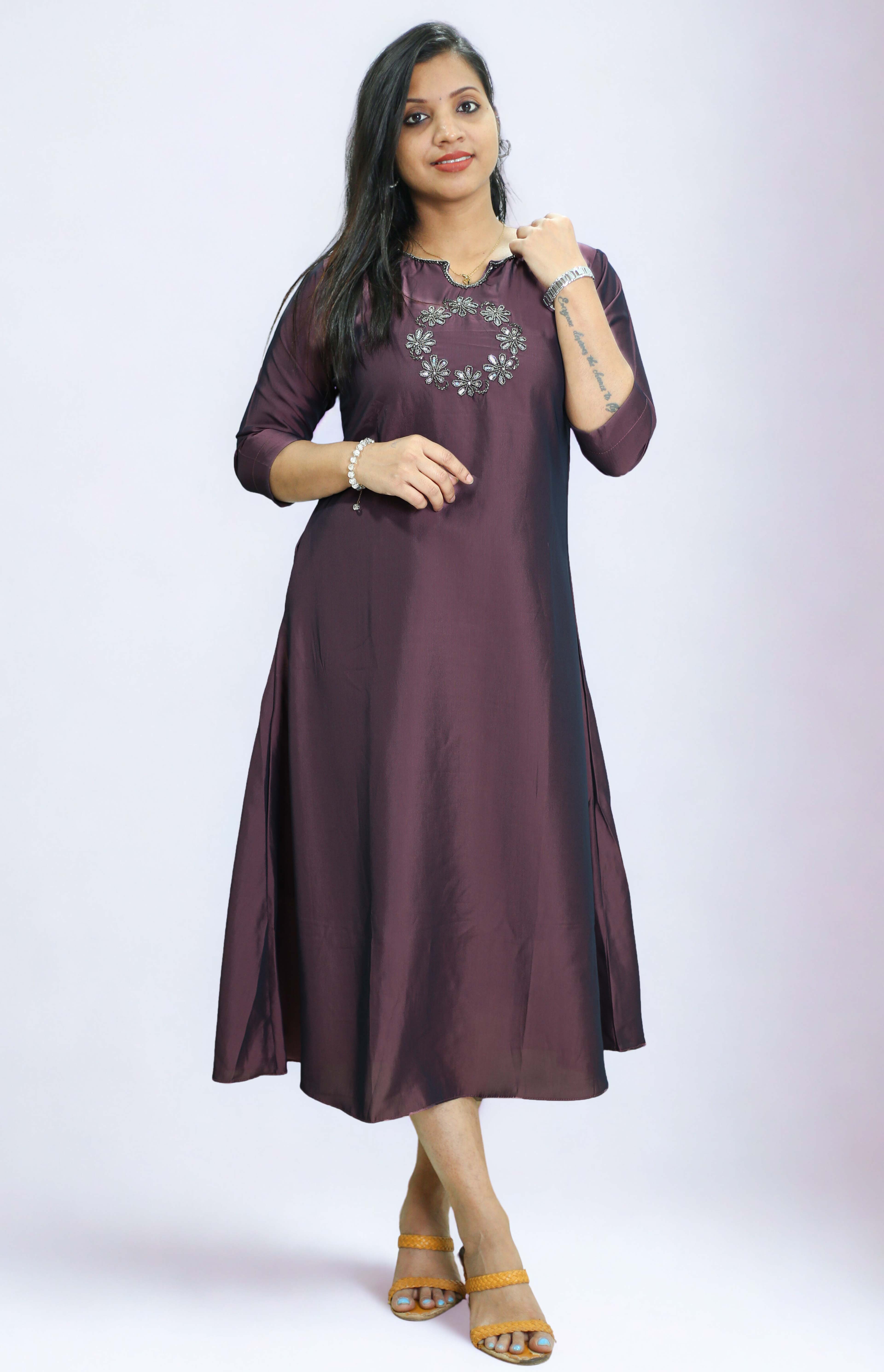 Graceful flared silhouette with sequins embellishment, ideal for festive & party wear