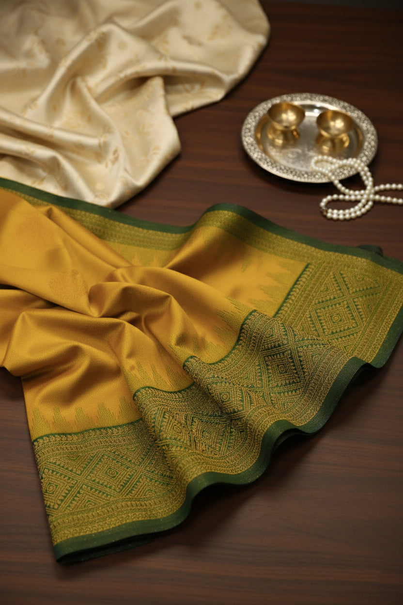 Beautiful semi silk saree featuring elegant floral butta detailing and a rich geometric-floral border.