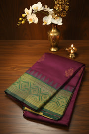 Beautiful semi silk saree featuring elegant floral butta detailing and a rich geometric-floral border.