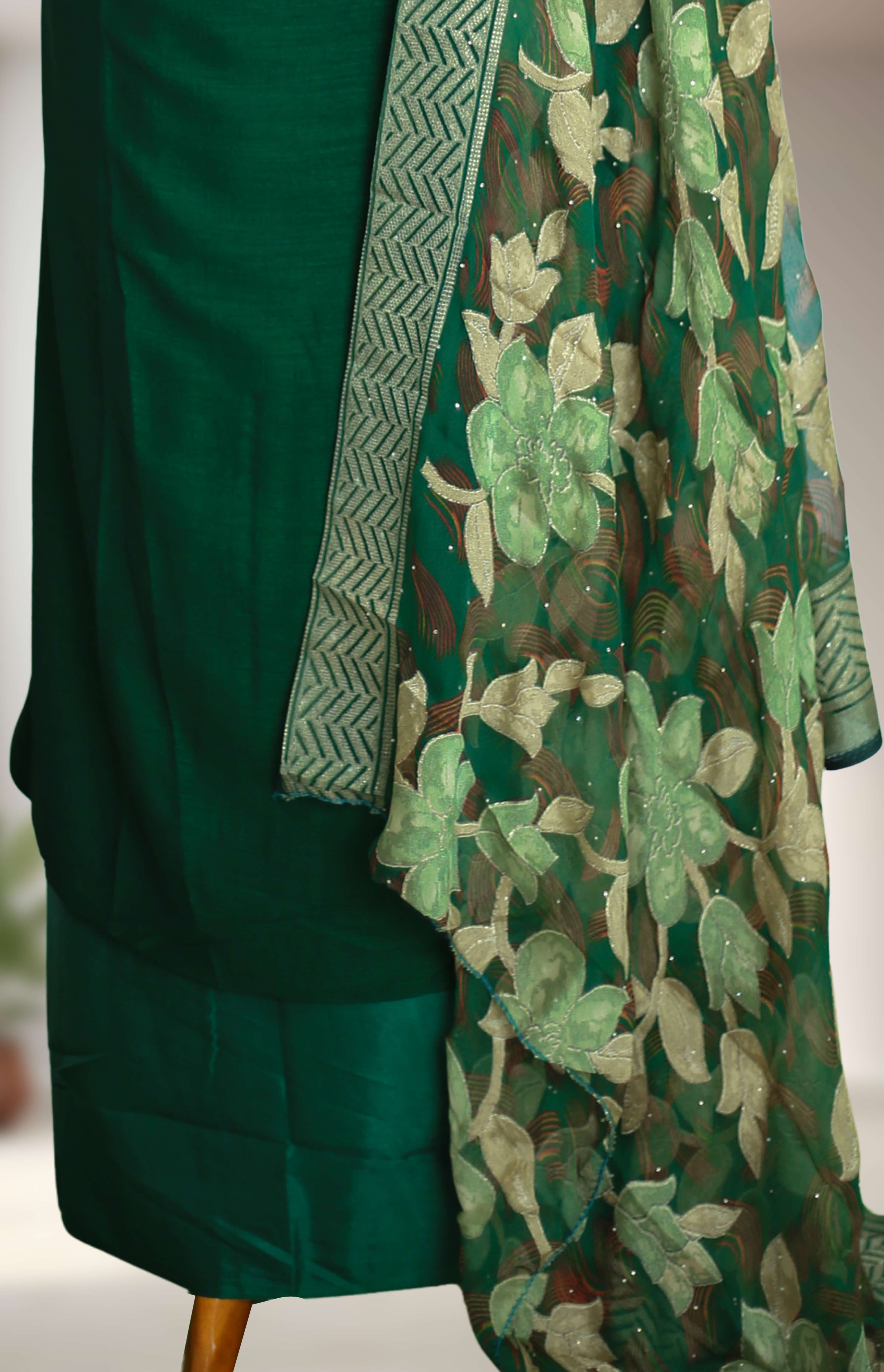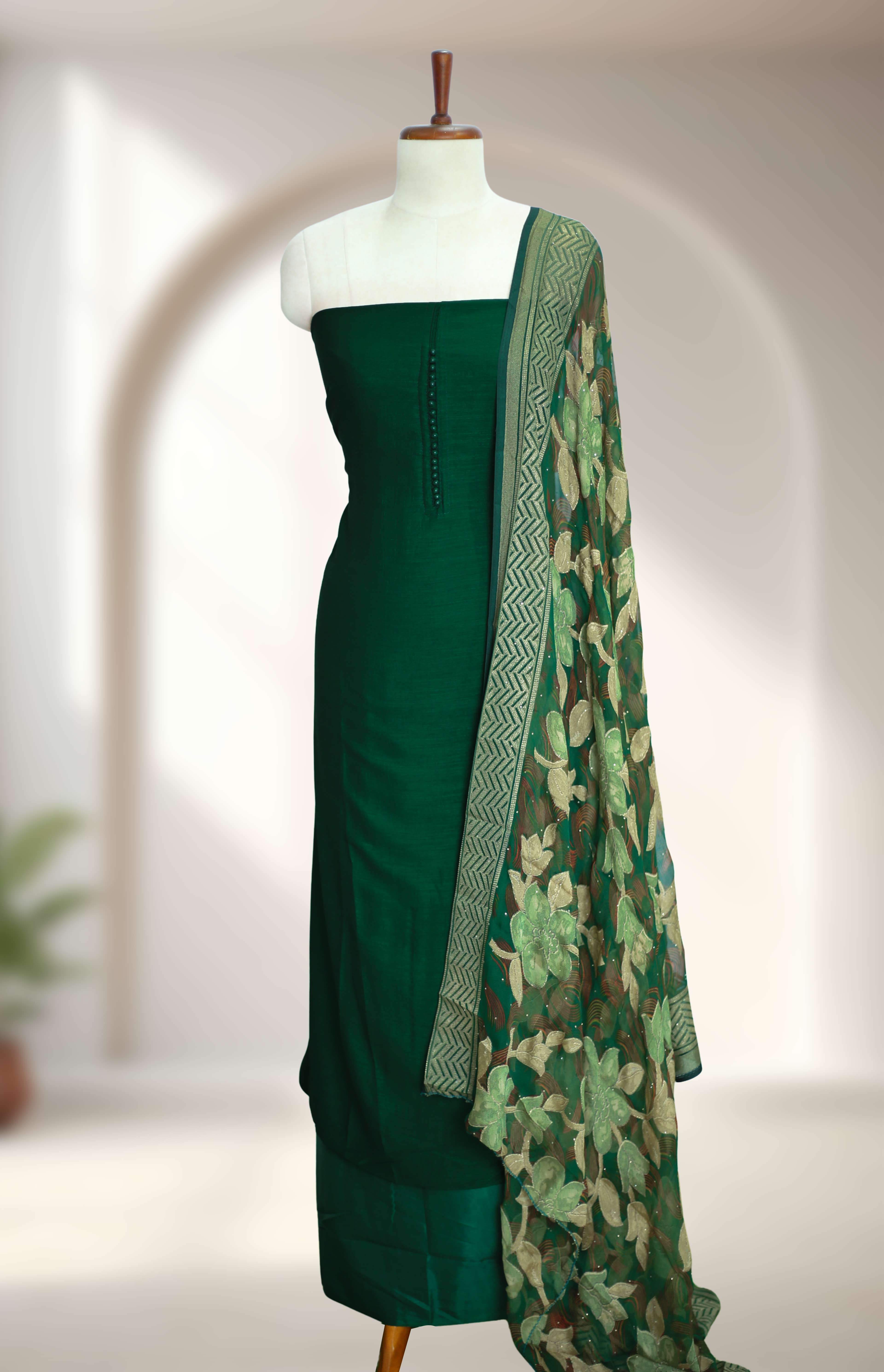 Elegant silk churidar material featuring stylish button detailing for a refined ethnic look