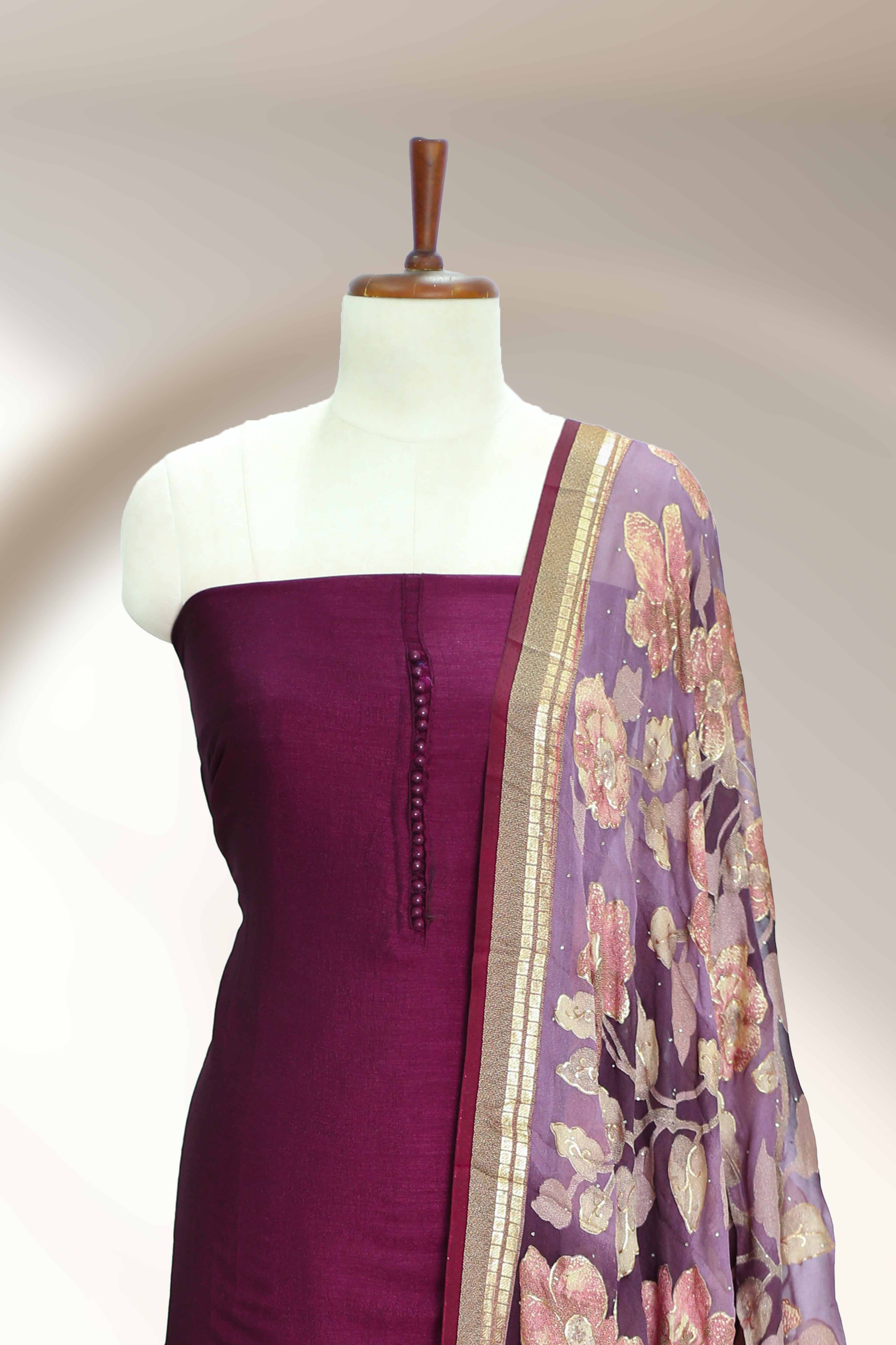 Silk Churidar Material – Button Work Design