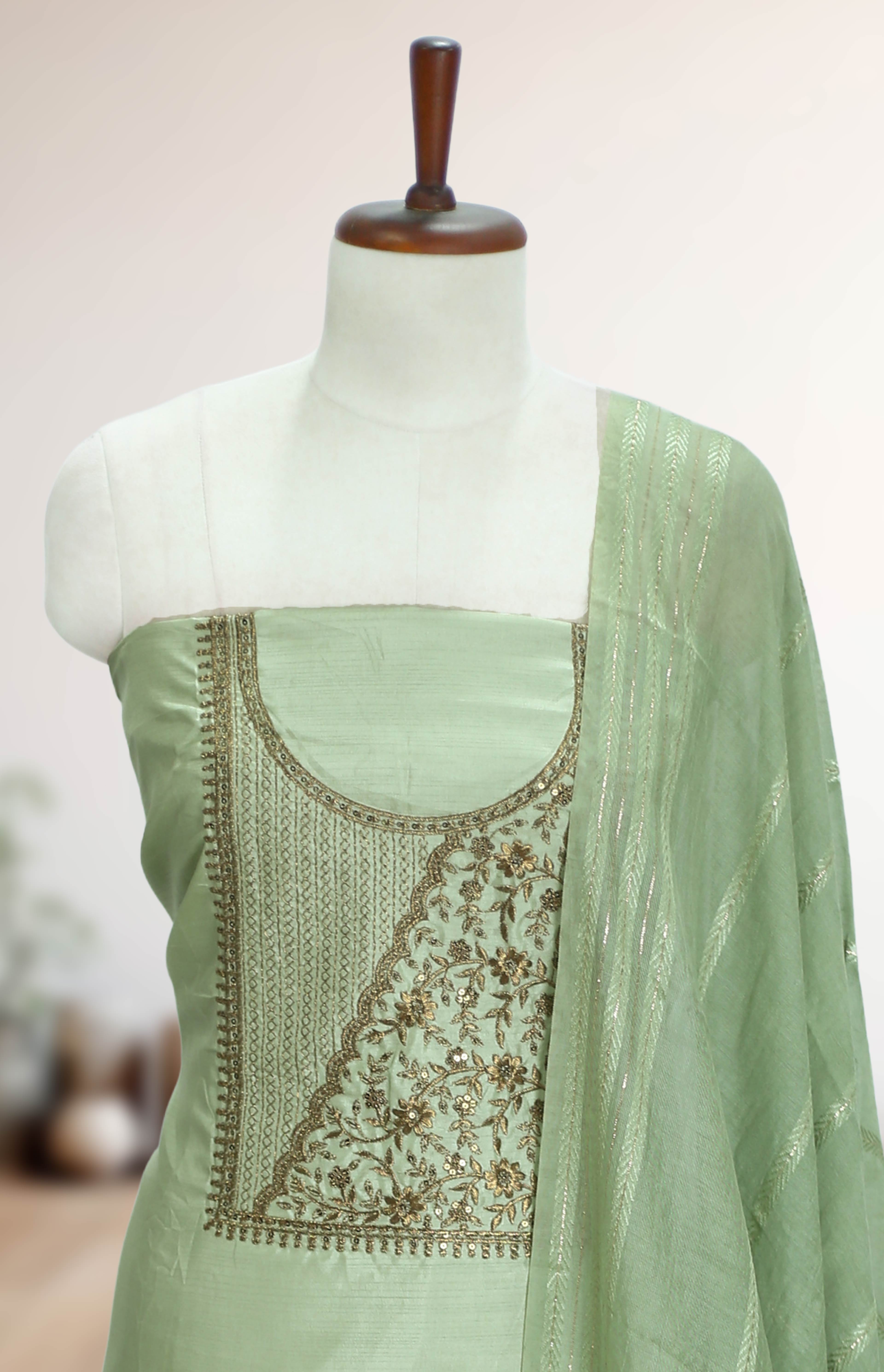 Silk Churidar Material – Golden Thread Work