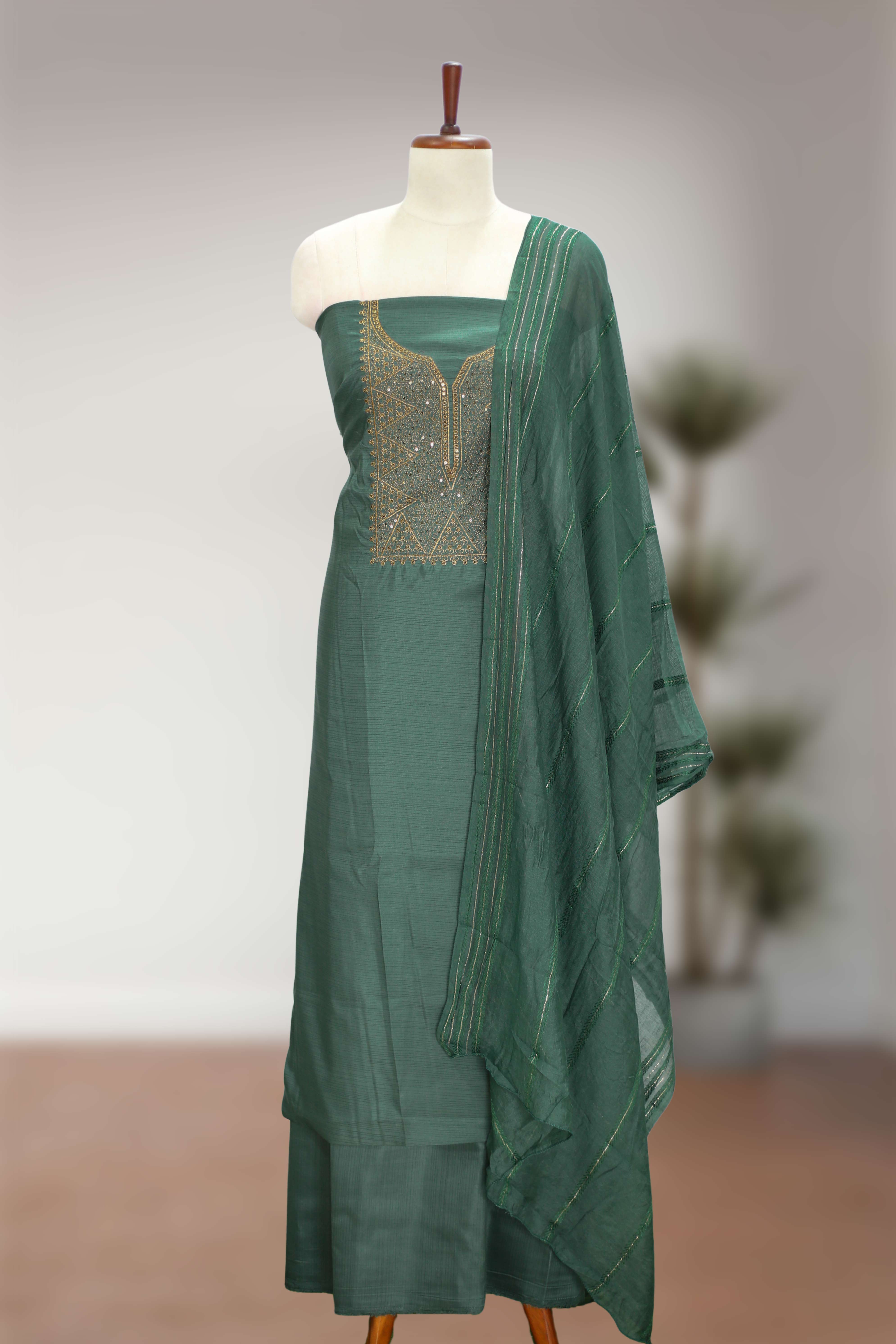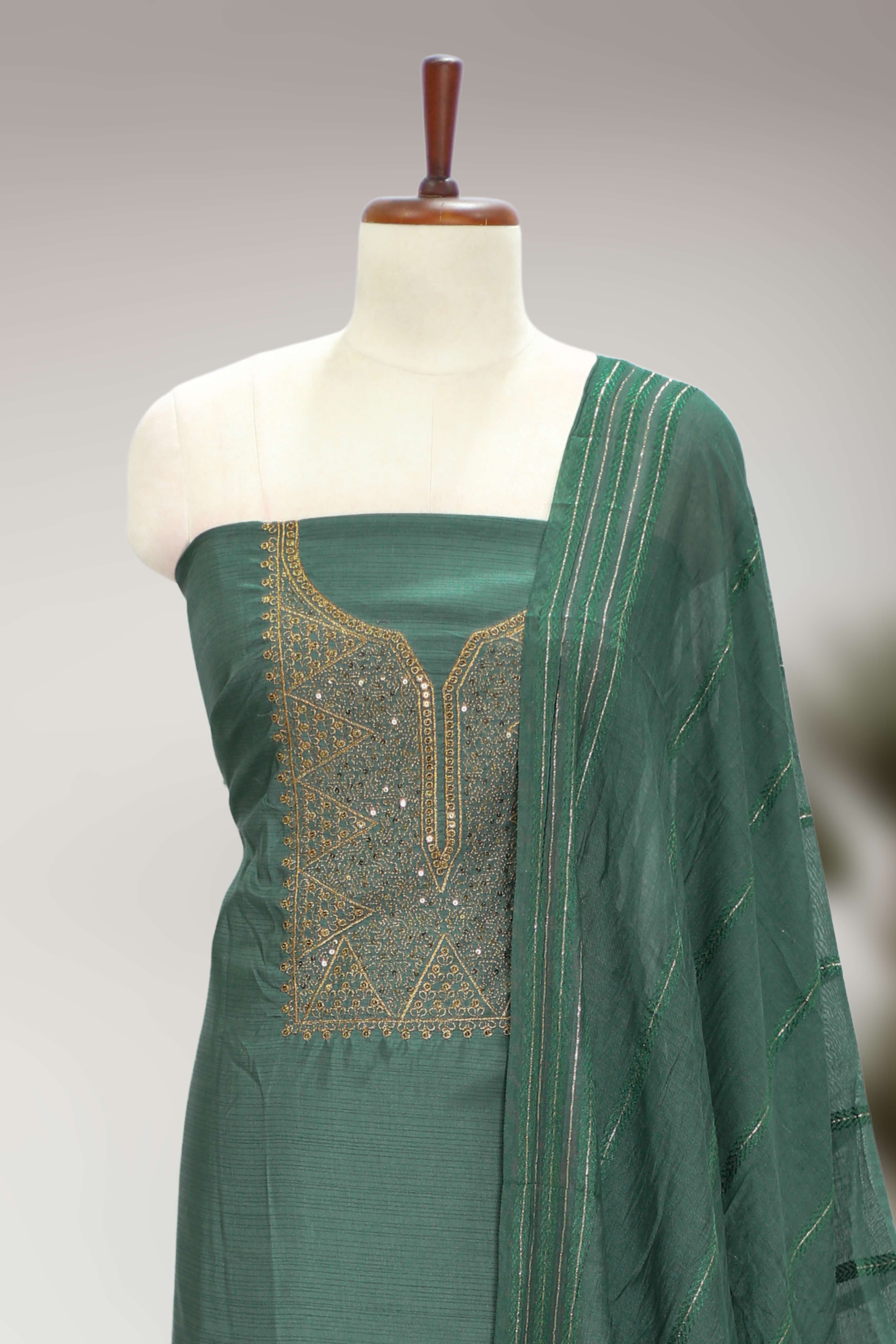 Premium silk fabric with elegant golden thread embroidery