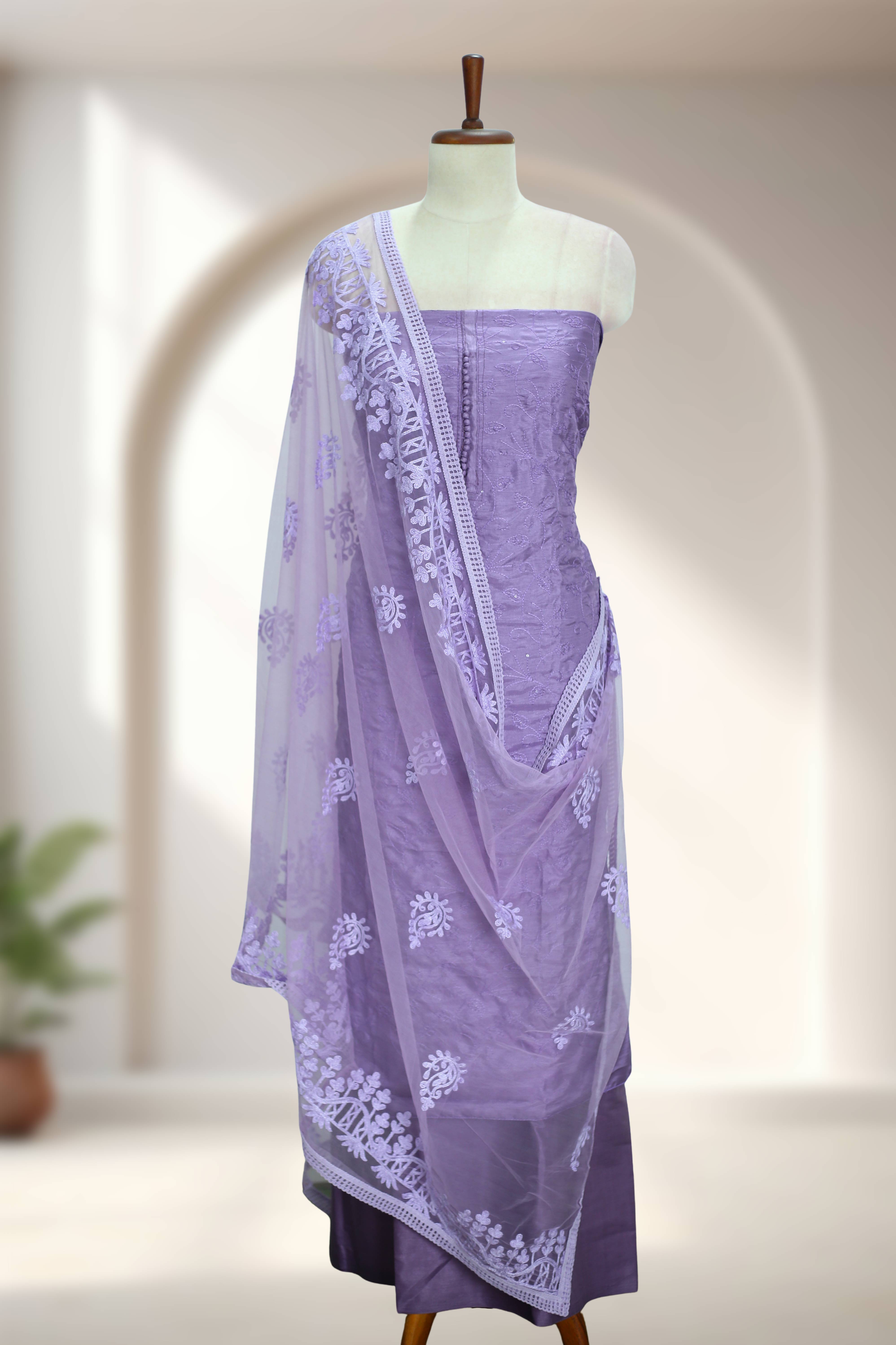 Silk Churidar Material – Thread Work with Button