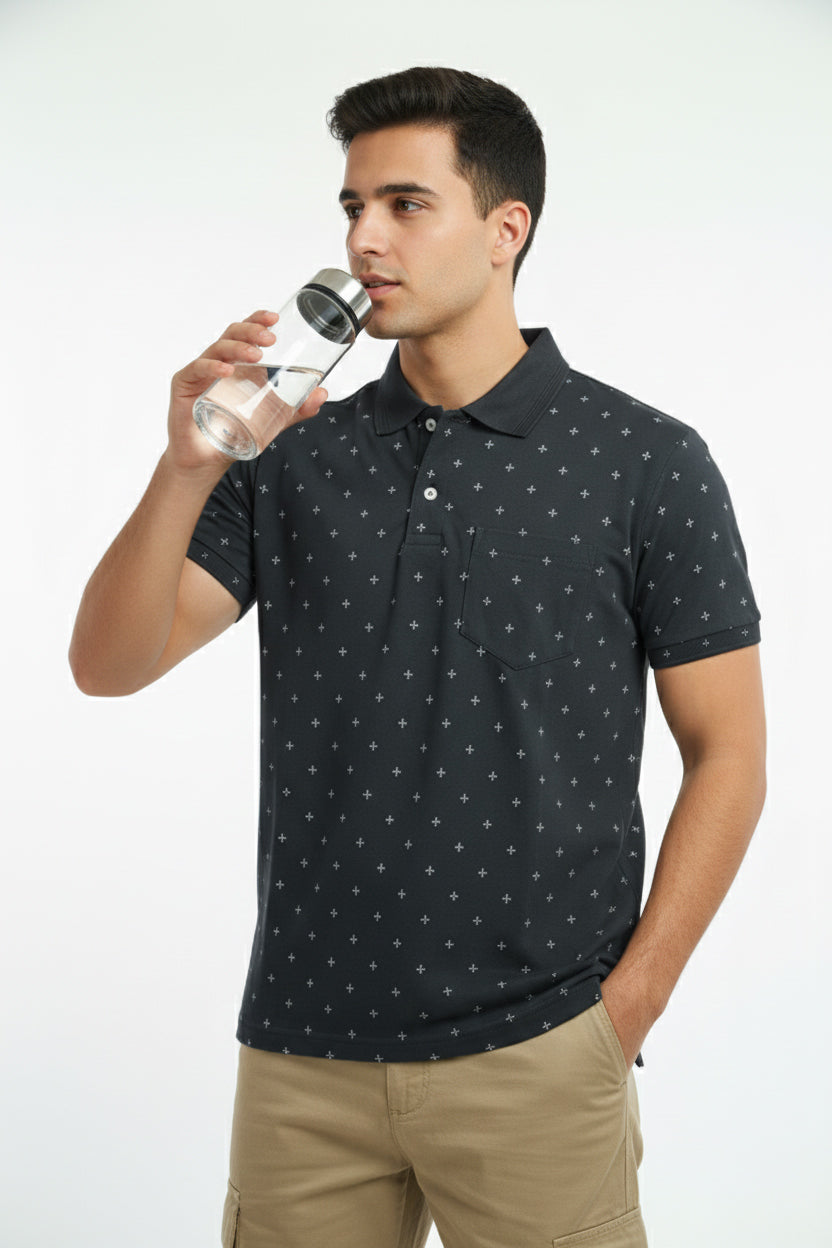 Classic polo style with a modern printed finish, suitable for casual & daily wear